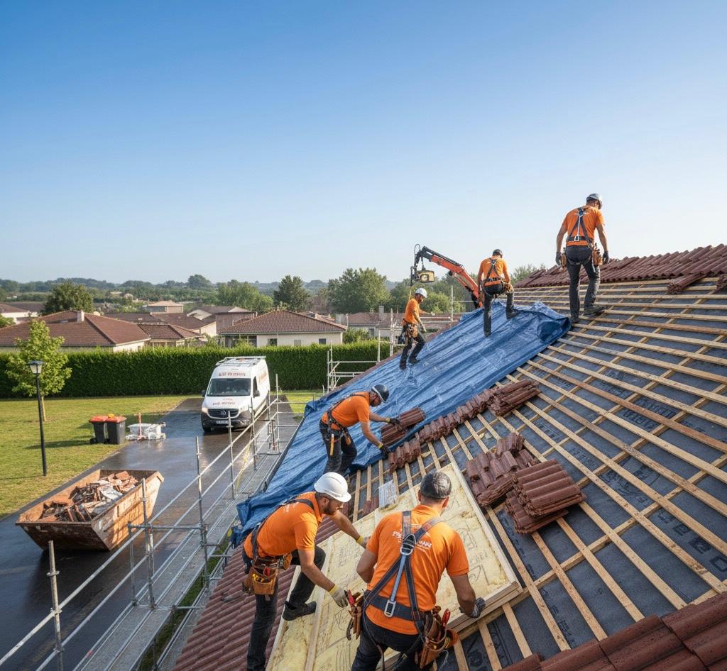 Nous remplaçons ou réparons votre toiture (tuiles, ardoises, bac acier) pour garantir une protection durable contre les intempéries. Travail rapide et soigné.