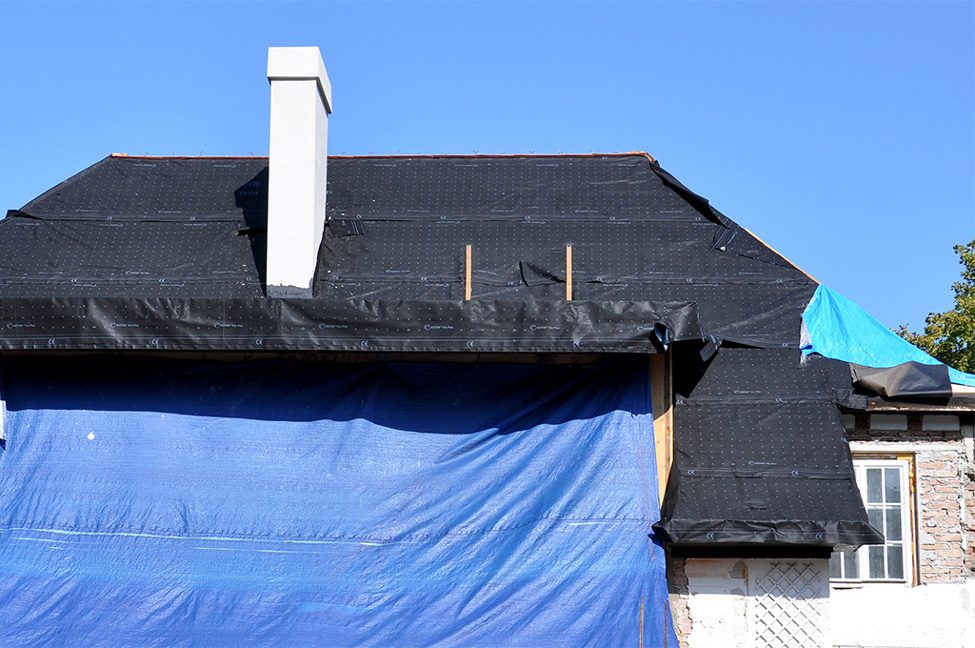 Nous intervenons rapidement pour limiter les dégâts causés par une fuite en protégeant votre toiture.